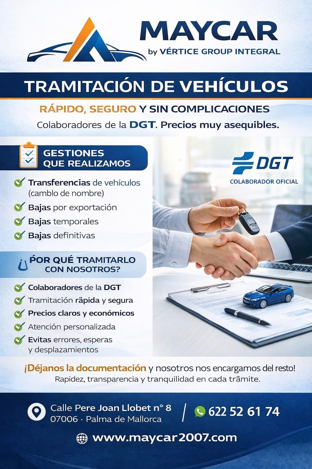 En Maycar nos encargamos de todo por ti, de forma rápida, segura y al mejor precio.